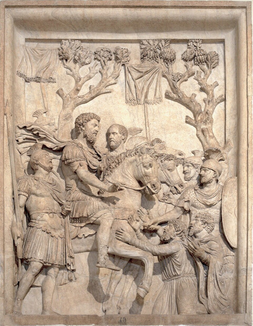 凱旋門の存在は、173年と176年の2度にわたって制作された、マルクス・アウレリウスのマルコマンニ戦争における軍事的偉業を描いた12枚の浮彫に基づいて推定されている。